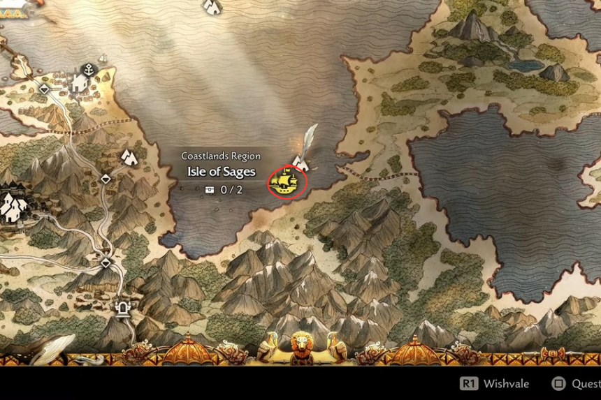 After collecting all five fragments, make your way to the Isle of Sages in the southeastern part of the Outersea. You may have noticed the gate here previously, it won’t open until you have a ship, which is required in Chapter 3 of the “Bestower of All” arc but can be obtained earlier.