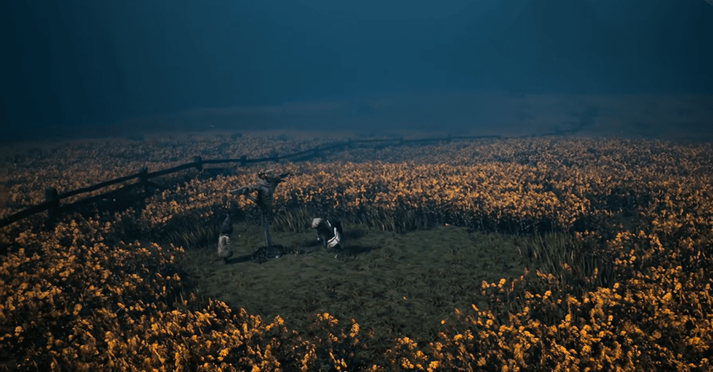 In the orange flower field, head to the far left area, then move upwards to find a scarecrow. Hit the scarecrow with your crowbar and kill the critter that emerges from that scarecrow. That critter will drop the deer mask.