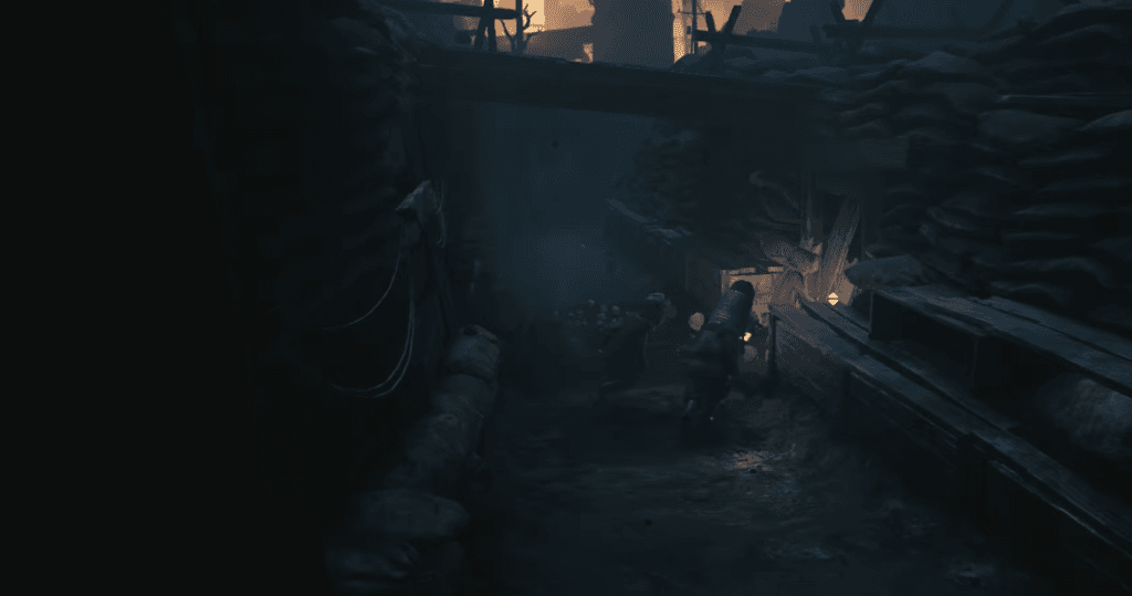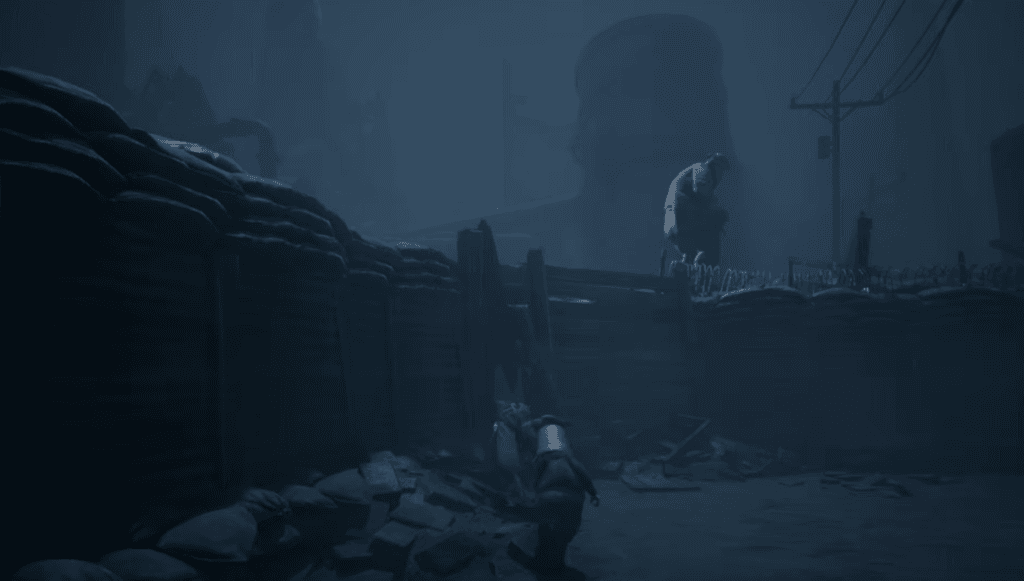 Move ahead in the trenches, you will see a soldier on top there you will also find a crack on the left side of the wall head left into a crack to find the mask.