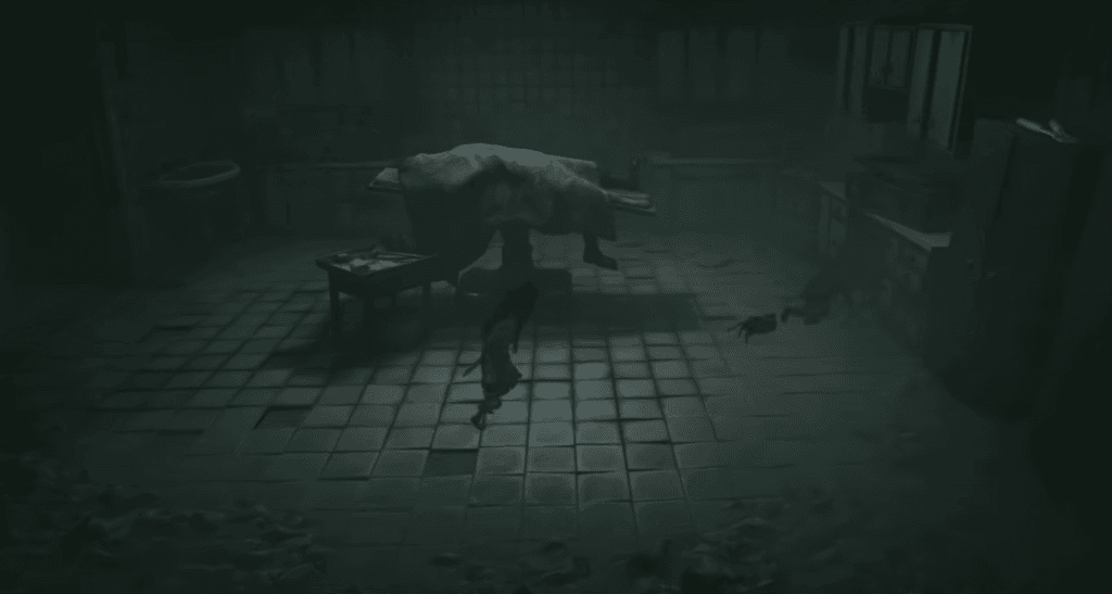 In the hospital surgery room, crawl under the desk on the right side to enter a hidden area to find the mask.