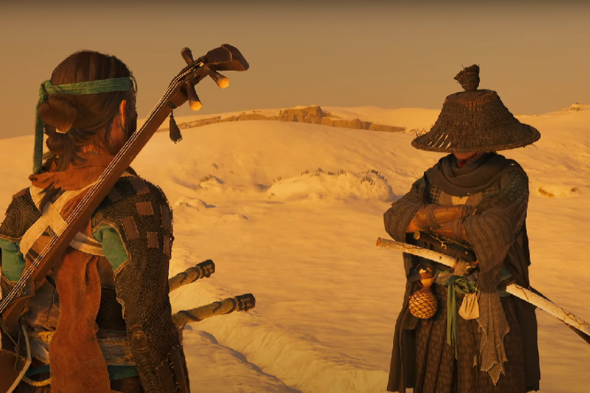 Located at the Forgotten Shrine on the southwest Oshima Coast, this Mythic Tale serves as a tribute to Jin Sakai from Ghost of Tsushima. Completing it grants a collection of the Ghost’s legendary relics, including the Ghost Mask, Stag Helmet, Storm Blade Kit, the Dance of Wrath ability, and the “From One Ghost to Another” Trophy.