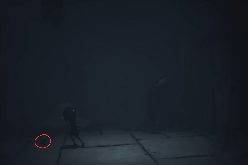 Right after the big baby grabs you, you’ll fall into a dark area. Start by heading left, and you’ll notice an opening in the wall. Pass through it, and Doll 4 will be waiting for you inside. This one requires paying attention to the surroundings, as it’s slightly hidden.