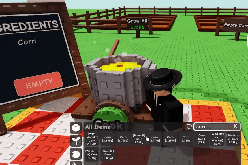 To cook food in Grow a Garden, you’ll first need to gather the right ingredients for the recipe you want to make. Once you’ve got everything, head over to the new cooking area in the lobby. Hold the fruit or item you need, then walk up to the Cooking Pot and press E to start preparing the recipe.
