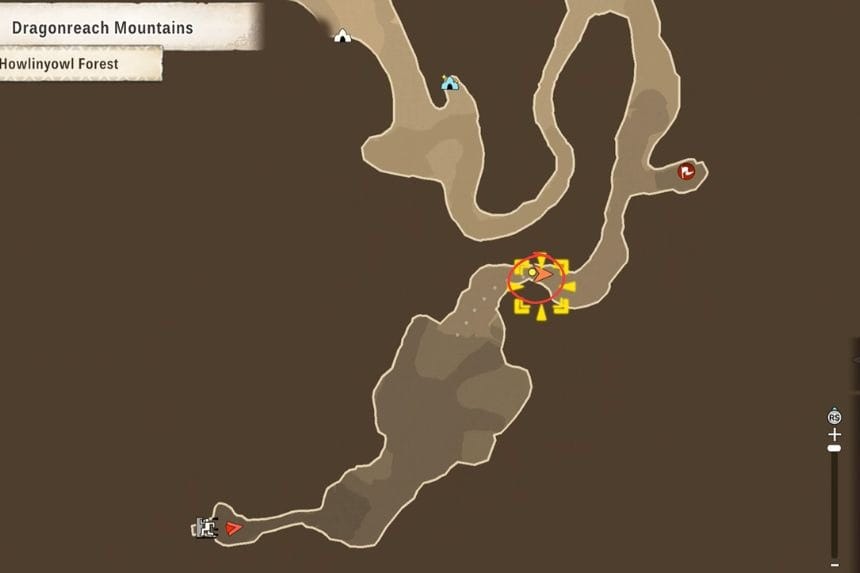 For the second Poogie, you’ll need to go to the Monster Den in Dragonreach Mountains. To reach the den, you’ll need to start from the southeastern part of the map and follow a straight path until you come closer to the edge. On your left, just across the edge, you’ll be able to find the Monster Den. Make a short flight there, and just outside the cave entrance, you’ll be able to find the Poogie.