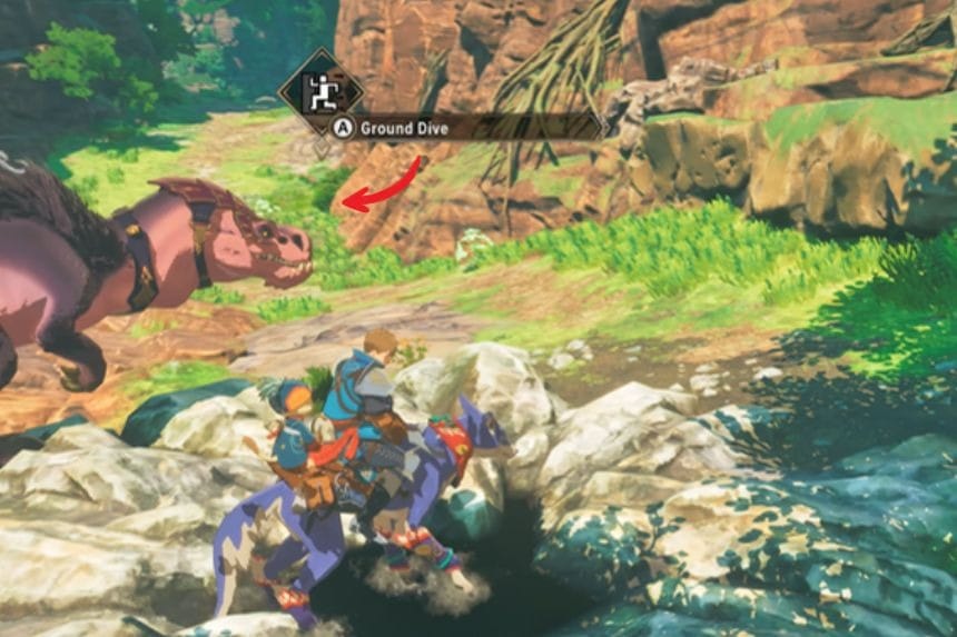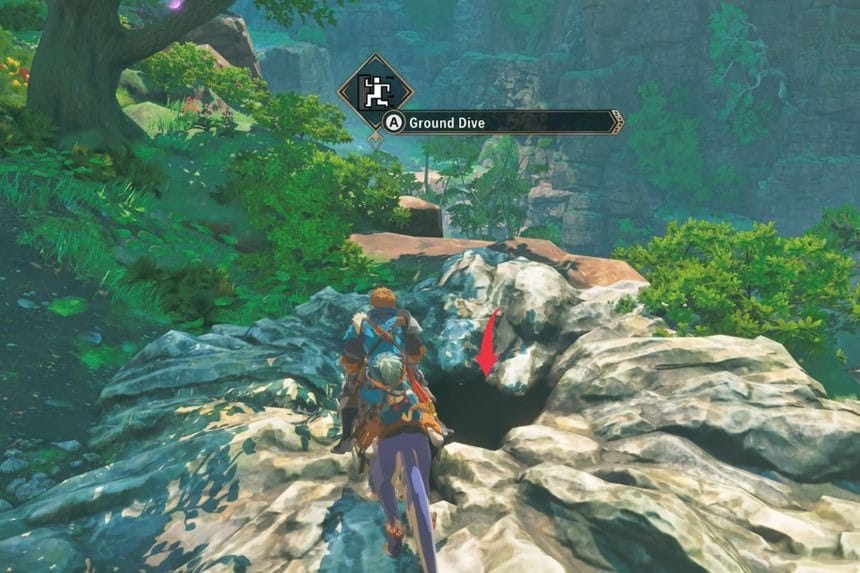 To get the first Poogie in Narrow Passage, you’ll need to go to the marked location in Canalta Timberland. Once you reach the location, you’ll find a dig point there. Instead of using the dig point, go straight, and keep to your left, and you’ll come across a second dig point. Use the ground dive here to reach the first Poogie’s location.