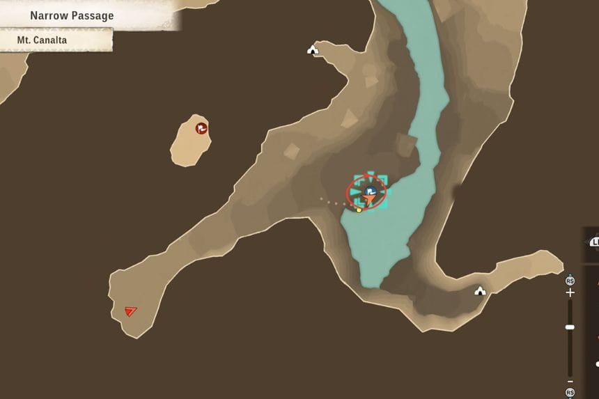 To get the second Poogie in Narrow Passage, you’ll need to go to the marked location near a water body. Start from the second dig point you used to find the first Poogie. From there, take the left path, which will take you towards the edge, and if you look down from there, you’ll find a water stream flowing by. The Poogie can be found just beside the water body.