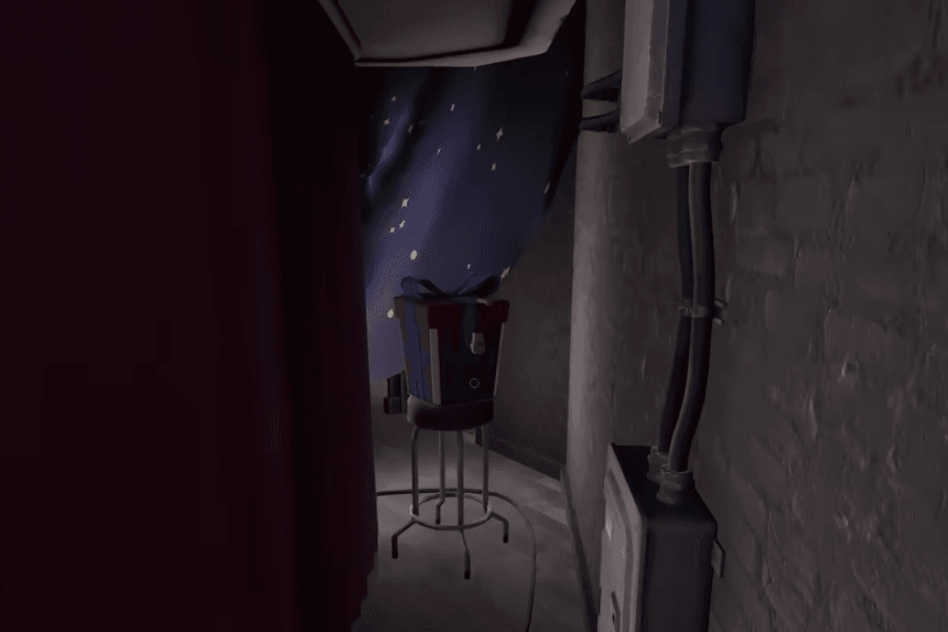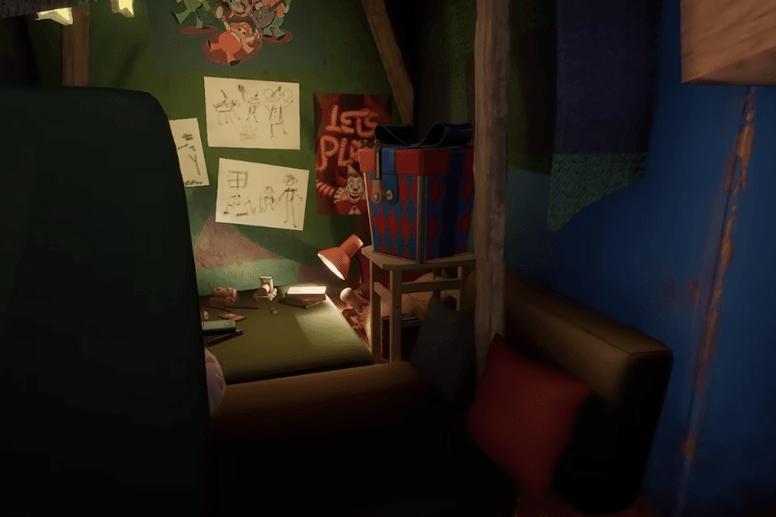Head into the birthday room inside the makeshift castle (left of the Jackie-the-Box). Crouch to crawl in and grab the collectible.