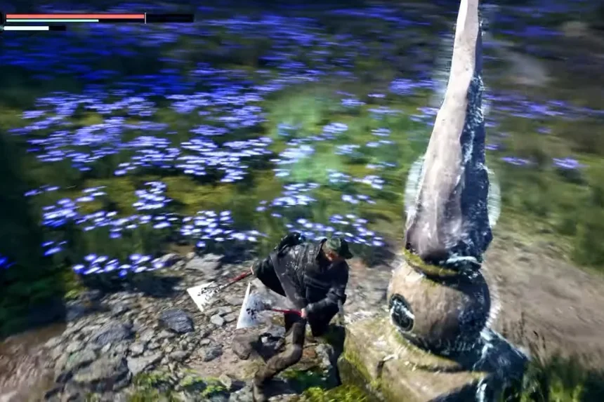 To unlock the Lake Cynon Pillar Puzzle, you’ll need to strike the stone columns around the pond in a precise sequence: Crown → Water → Key → Star → Cup. The order becomes available after your conversation with Abbot Jaffer regarding the Blue Flowers, which guides you toward the puzzle’s location. Hitting the pillars correctly will trigger the mechanism and solve the challenge.
