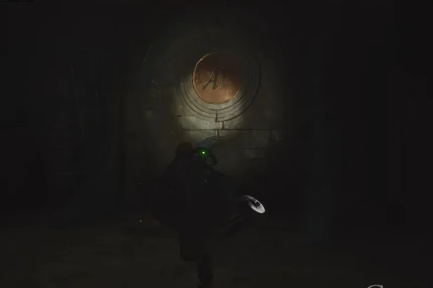 This puzzle is located directly beneath Vitalis’s house. After you’ve gained access to the building, climb down the ladder to the basement where the wall, photos, and digital lock await. With the images in place and the code entered, the puzzle is solved, allowing you to progress.
