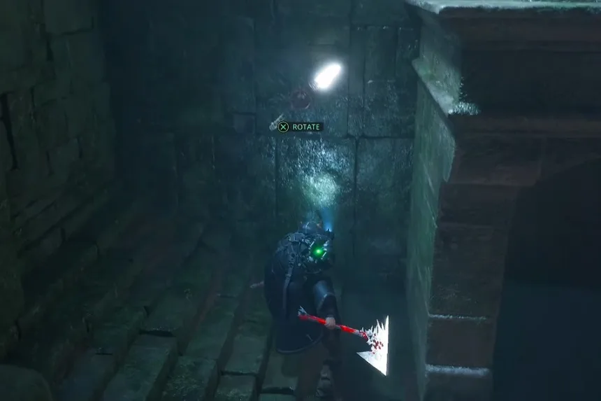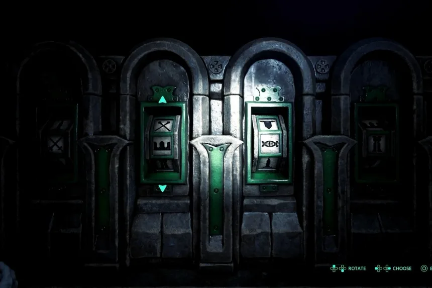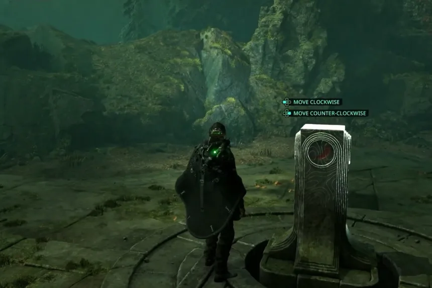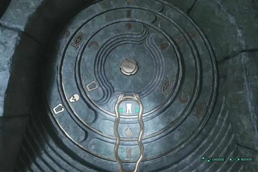 This challenge appears not long after you secure your first weapon and defeat the dungeon’s opening foe, right past the manual save point. To interpret the inscriptions, deploy your drone to scan the strange carvings and piece together the meaning. Once you rotate the rings into the right formation, the mechanism activates, and the passage opens, allowing you to progress deeper into the dungeon toward its exit.