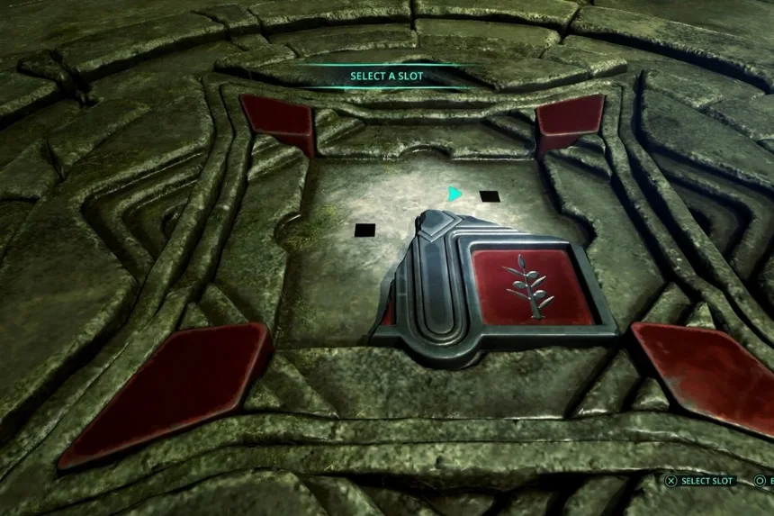 To solve the Marastan Door Puzzle at the Blood Queen’s Tomb entrance, place the Square, Oblique, and Angled Tablet Fragments into the central crevice. This raises four pillars, which must then be aligned to match the fragments’ original positions to unlock the door.