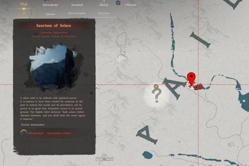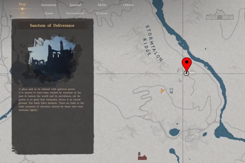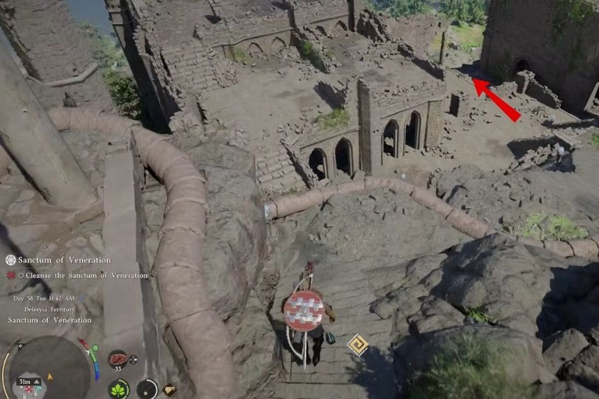 You can find the location of the Sanctum of Penitence in the southeastern part of the map. It is not far from the location of Hernand City in Crimson Desert. If you are coming from the city, then head southeast and follow the road until you get there.