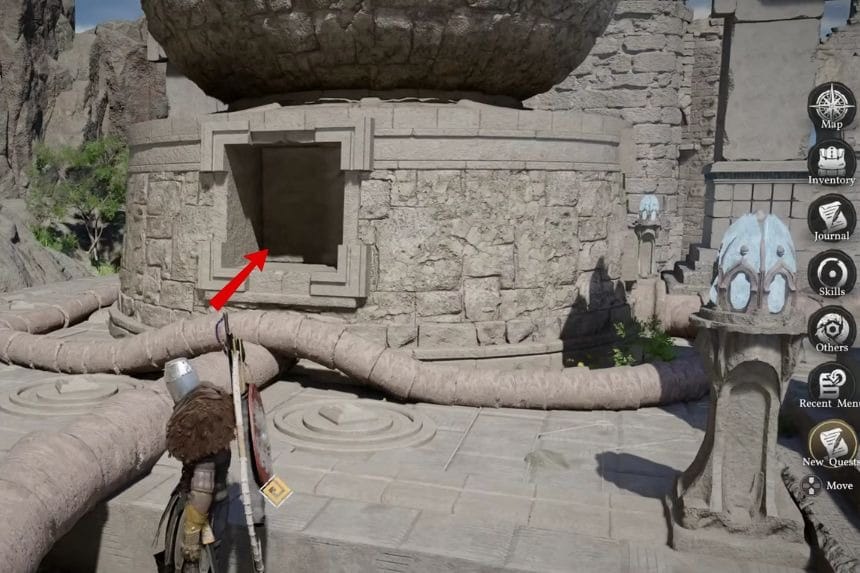 To solve the sanctum puzzle in Crimson Desert, the first step is to defeat all the enemies in the area. After clearing the area, move towards the puzzle and go through the passage. In the puzzle, there is only one object that can be moved. In addition, there is another object that can be moved and is located in the area nearby.