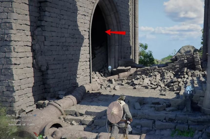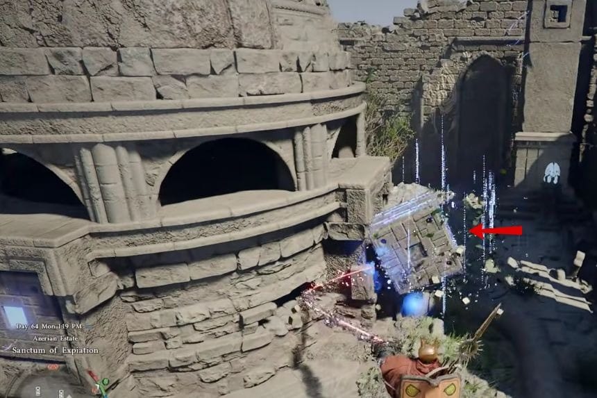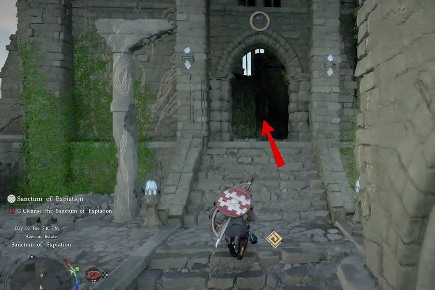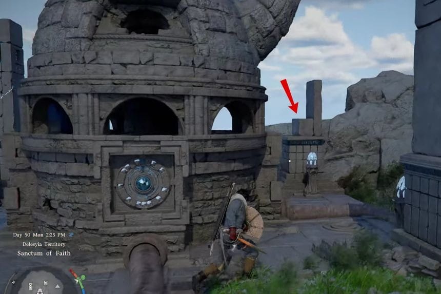 To complete the Sanctum of Penitence in Crimson Desert, first of all, you have to get rid of the enemies in the location so that you can move around without any problem. After that, examine the columns in the location. One of the columns is missing the top part.