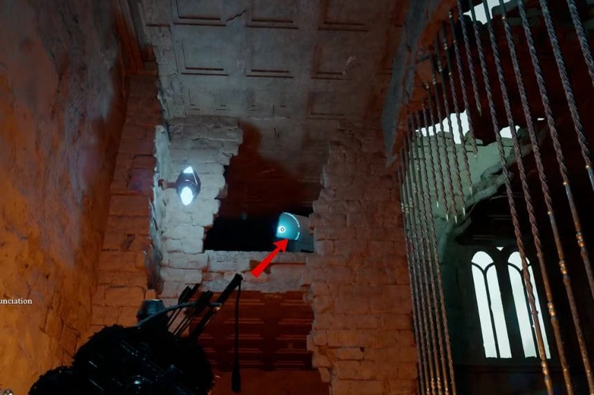 If you have made it through Chapter 4 and now have the special pot, this should make it easier for you to grab the next object. Jump up to the window and use the Axiom ability to lock onto the sphere-shaped item located inside. Once you are locked onto the item, you’ll be able to store it in the pot. After that, jump back down and discard the item from the pot, since the option to place it directly may be unavailable.
