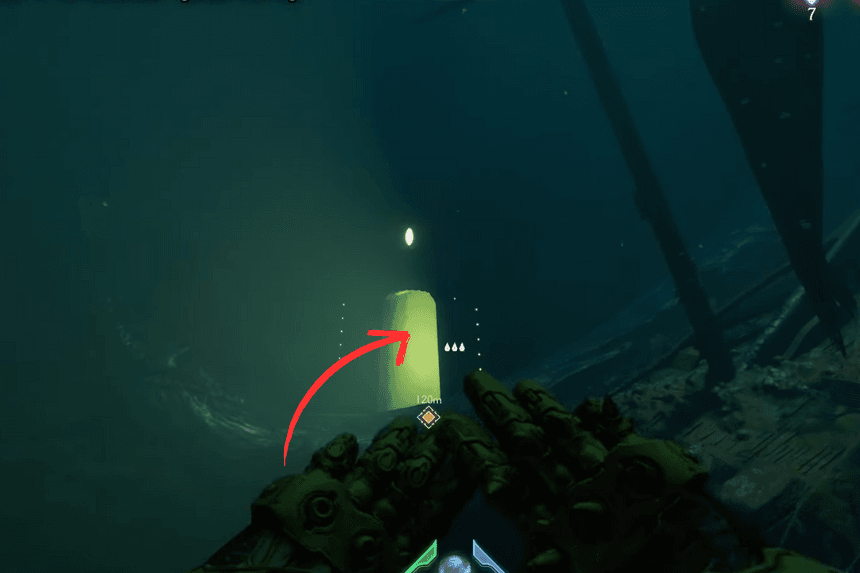 When you reach the sunken shipwreck you’ll notice some green armor pickups nearby, dive in. Don’t go all the way through the submarine, before you reach the end, take the path on the right to discover a hidden area and a codex entry.