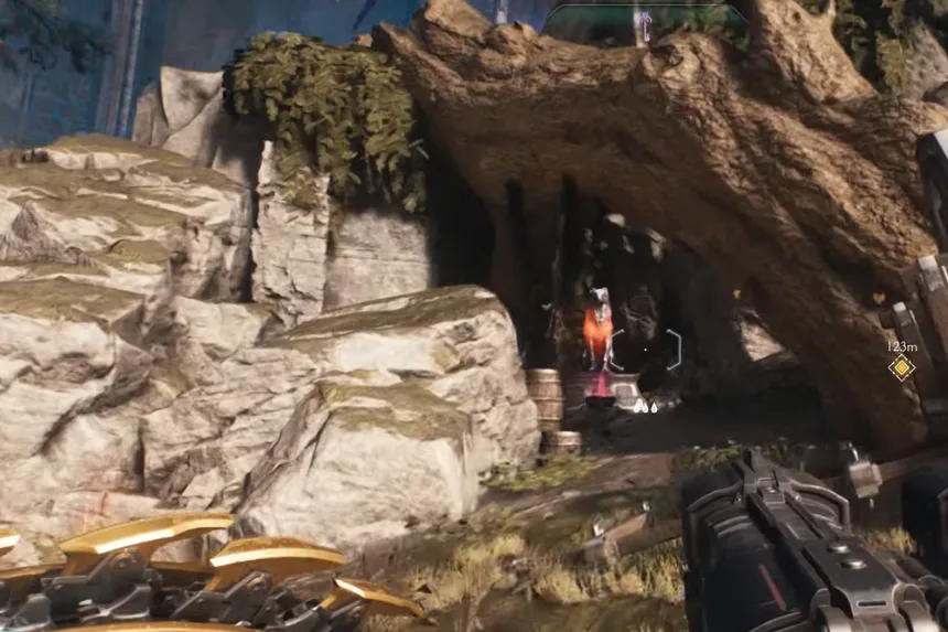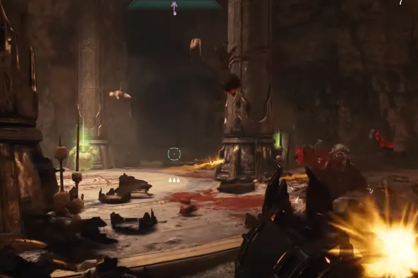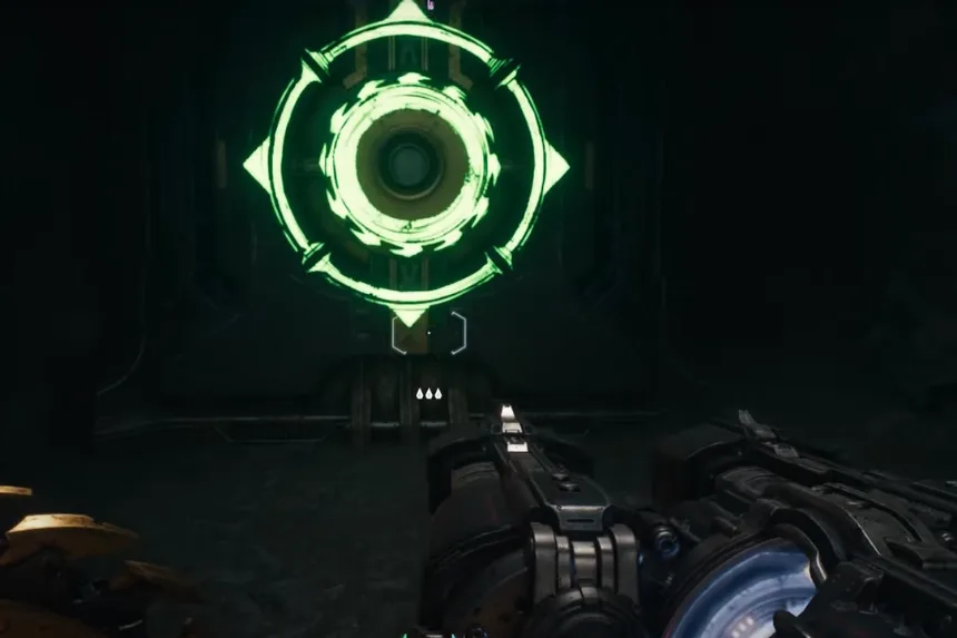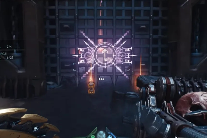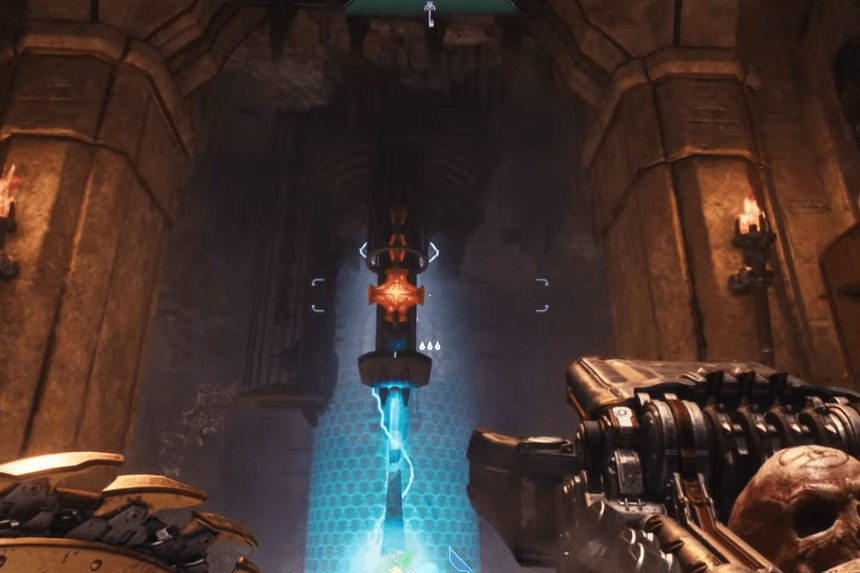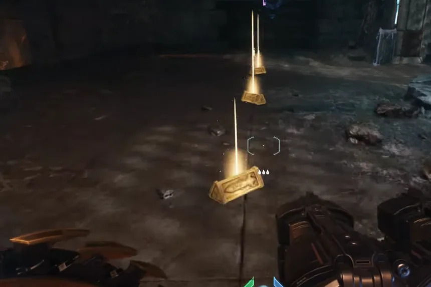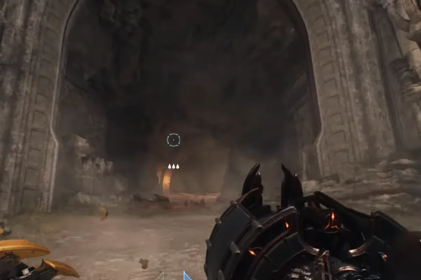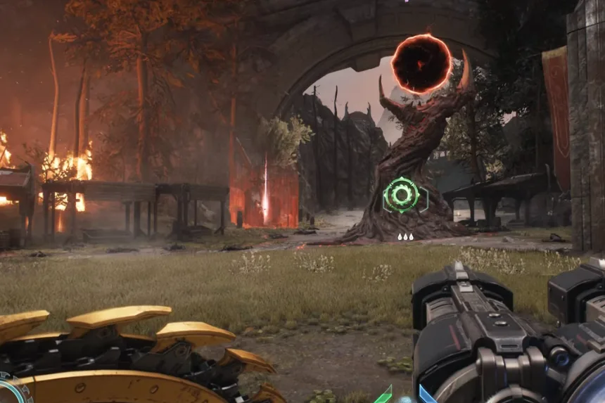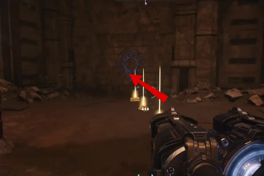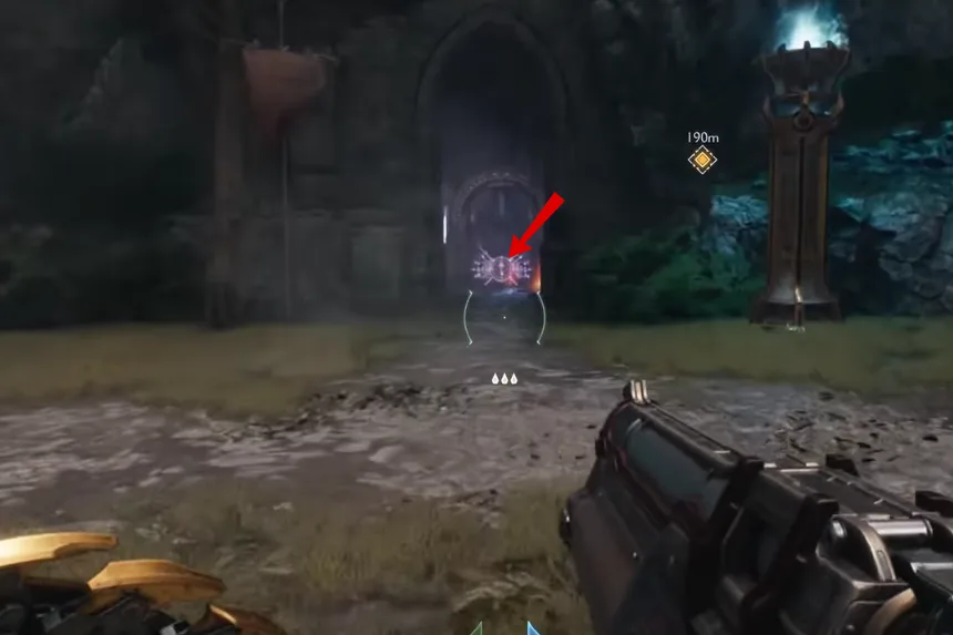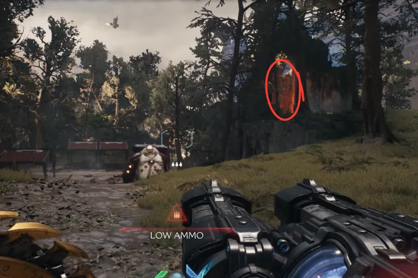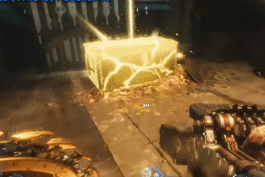 Just south of the artillery cannon you utilized earlier, close to the next Gore Portal, is where you’ll find the next gold and secret. Enter the space and vanquish the Hell Knights. Proceed through the blue gateway after that.
