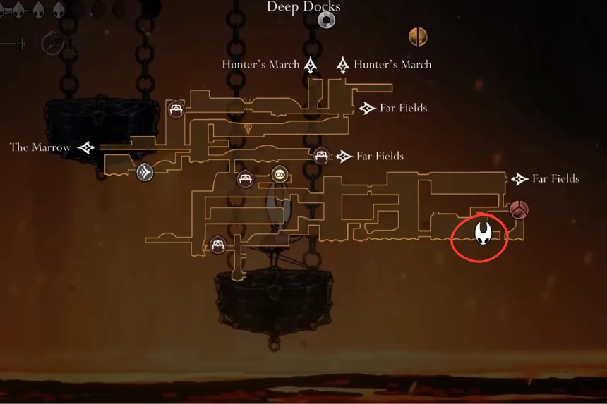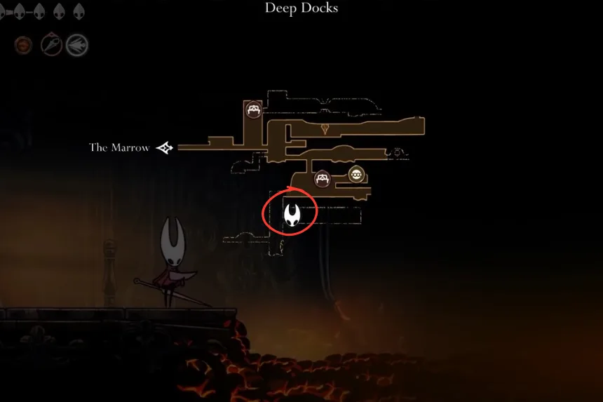 You’ll need a Simple Key and the Clawline Grappling Hook, with Faydown Cloak helping. Make your way to the third large room and complete a platforming section involving gliding past spikes and breaking walls. If you’re struggling to progress in the Deep Docks and need guidance on how to exit, you refer to our guide on Where to Go After Deep Docks in Silksong.