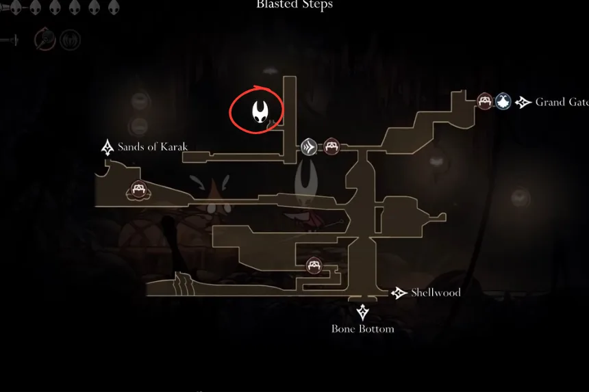 Near the elevator above Bone Bottom, head right and up one room. In a small corner with spike traps, break a weakened wall to find the fragment.
