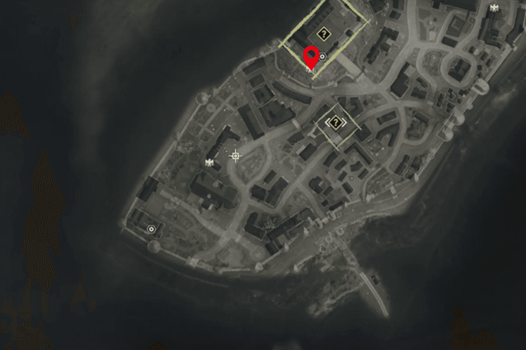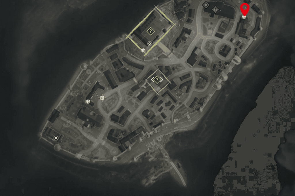 Head to the northeast corner of the map, where you’ll find the library. Stand in front of its main entrance and look at the building immediately to the right. You’ll spot the Stone Eagle perched on top.