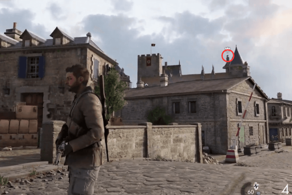 While you’re in the area where you’re trying to figure out how to trap the Zugwerfer (the main objective area), look for the crane on top of the building. The Stone Eagle is right next to it. You can get a good view of it from the top of the Nazi bunker that’s southeast of the building.