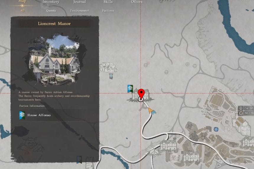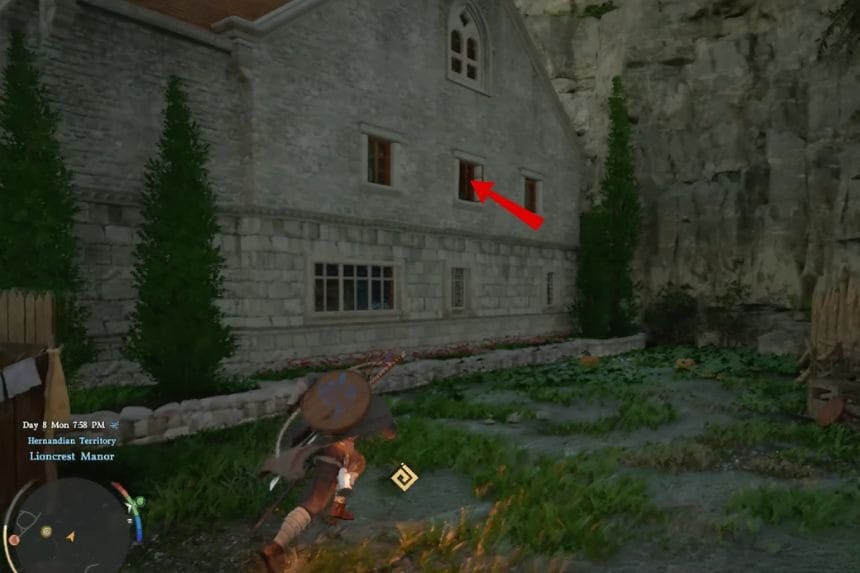 You can get into Lioncrest Manor by climbing up the outside of the building and going in through a second-floor window. You’ll also visit this place naturally during the side quest Bruna’s Request, which gives you proper access to the manor.