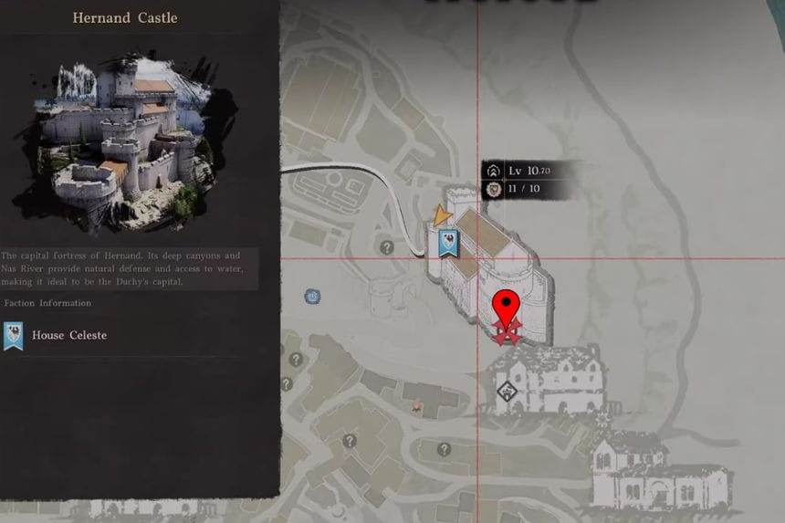 As for getting into the castle itself, you’ll need to wear the Hernandian Attire. This outfit is given to you as a reward from an earlier main quest called “Actions Speak Louder Than Words.” Once you have it equipped, you’ll be able to enter the castle without any trouble.