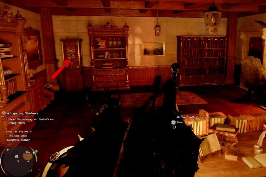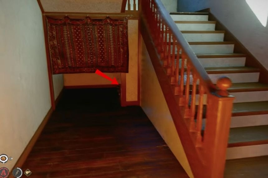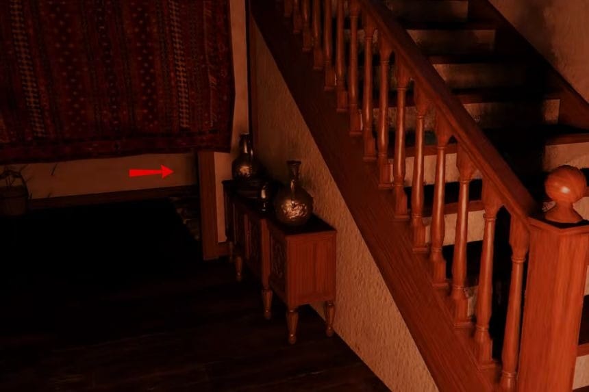 Head inside the house, and on your right, you’ll see a staircase going up. Upon reaching the top of the staircase, turn left and head toward the door at the end of the hall. The puzzle for the strongbox is located in this room, but keep in mind that entrance into this room may vary depending on the time of day, so if the door isn’t available, try coming back later.