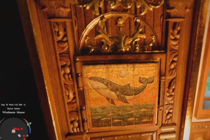 To solve the Windmere Manor strongbox puzzle, you need to rotate the panels until they form the image of a whale.