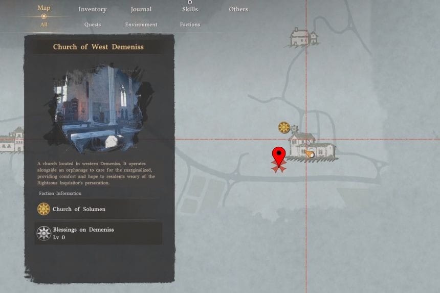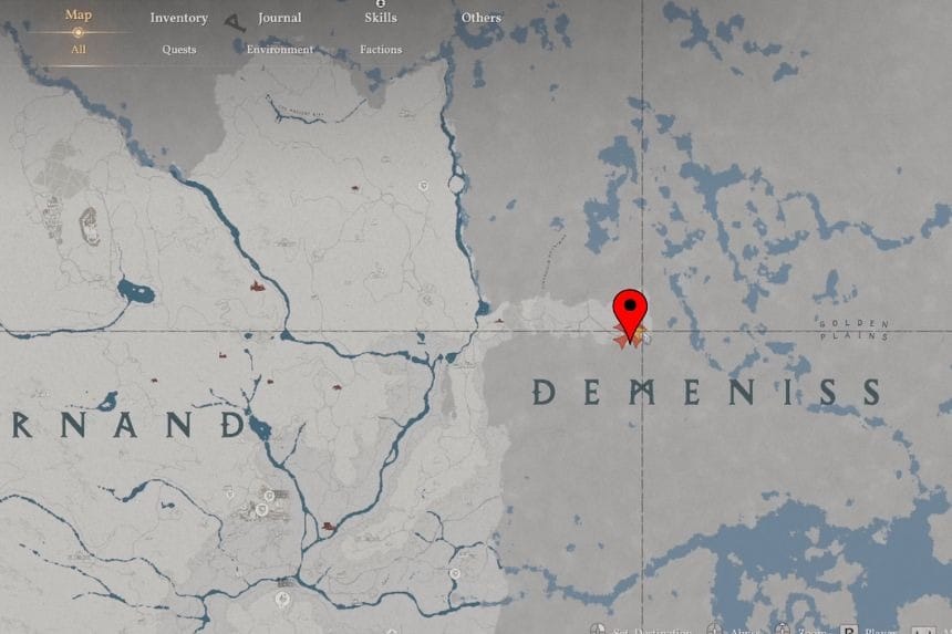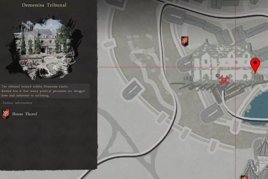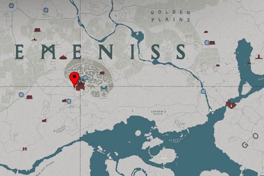 You can find this strongbox inside the City of Demeniss, on the northeast side. It’s located in a manor along the inner north wall of the city, hidden behind a bookshelf on the ground floor. The area is guarded, so you’ll either need to sneak in carefully or deal with the enemies first. If you enter from the north side, you’ll have a better chance of getting inside unnoticed.