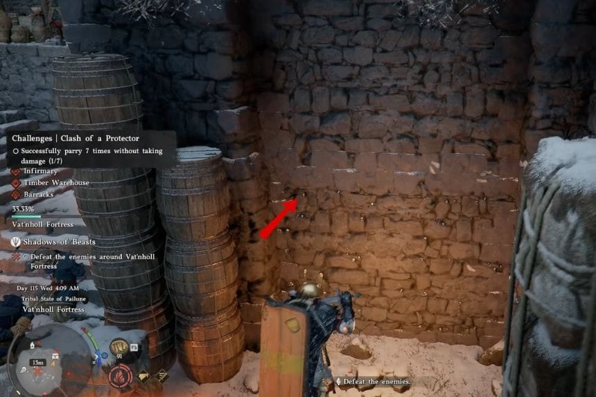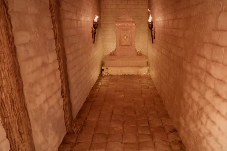 To get it, enter the fortress from the northern side and follow the path on your left all the way down toward the southern end. Behind the tower at that spot, you’ll see a stone stele. Use your Force Palm ability on it, and it will open a hidden hatch leading underground where the strongbox is kept.