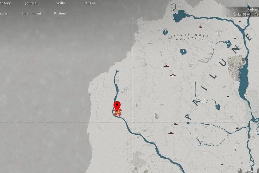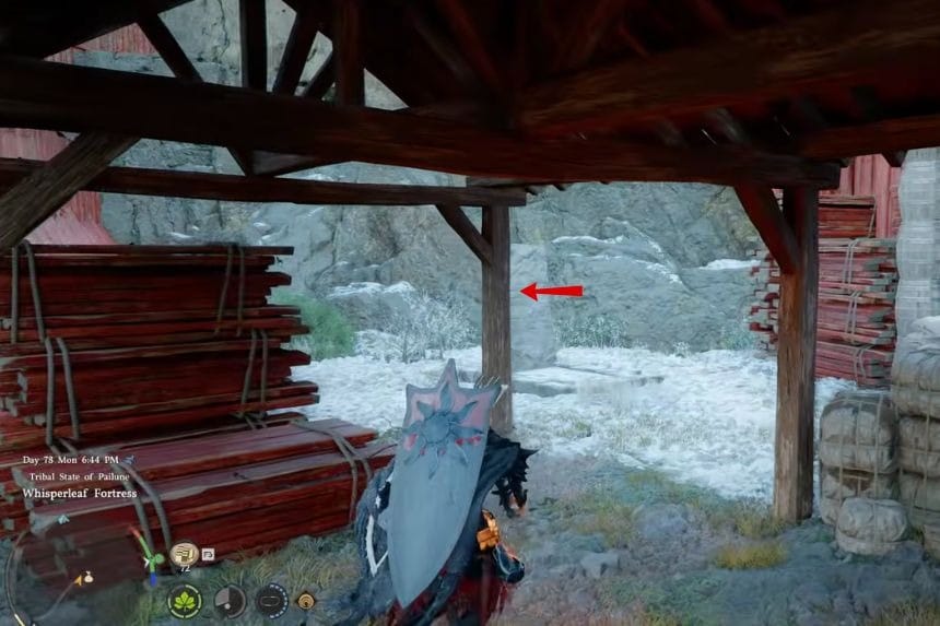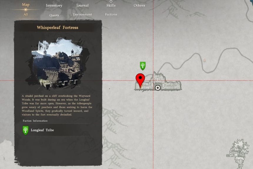 The strongbox is beneath Whisperleaf Fortress. You’ll find this fortress to the west of the Silver Wolf Mountains in the Pailune region on the main map.