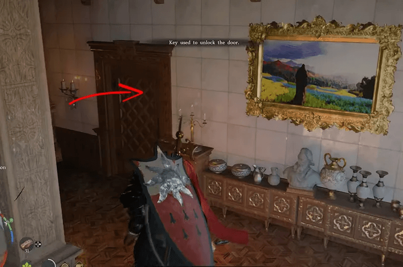 You’ll find this strongbox on the second floor of Sungrove Manor, which is located northwest of the city of Demeniss. To get in safely, go around to the back of the manor on the southeastern side where there are no guards. Climb up the wall and enter through the window. As soon as you’re inside, you’ll see the strongbox right on your left.