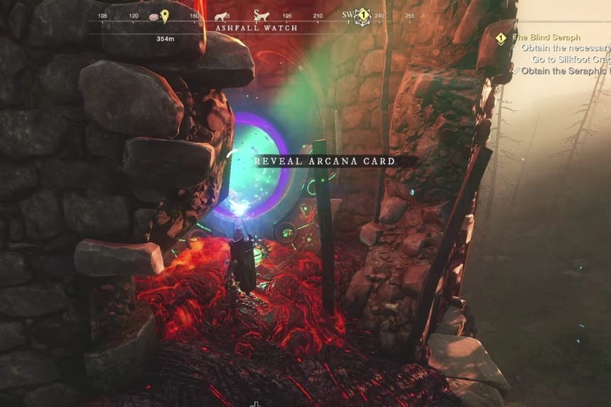 Travel south from the Church of Contemplation to Ashfall Watch, near Scorchstone. Circle around the watchtower, and you’ll find the card waiting at the top.