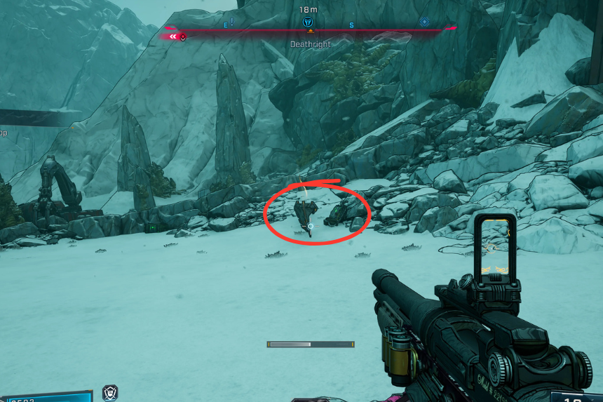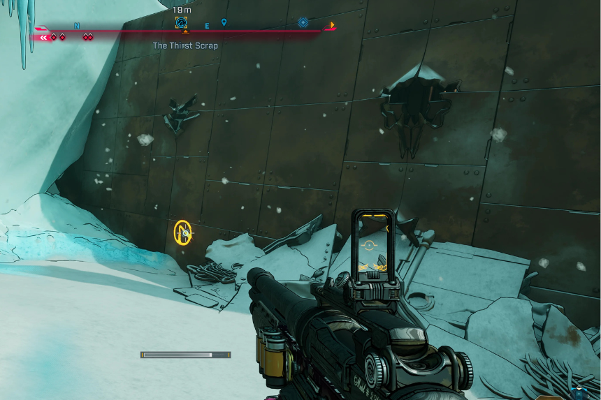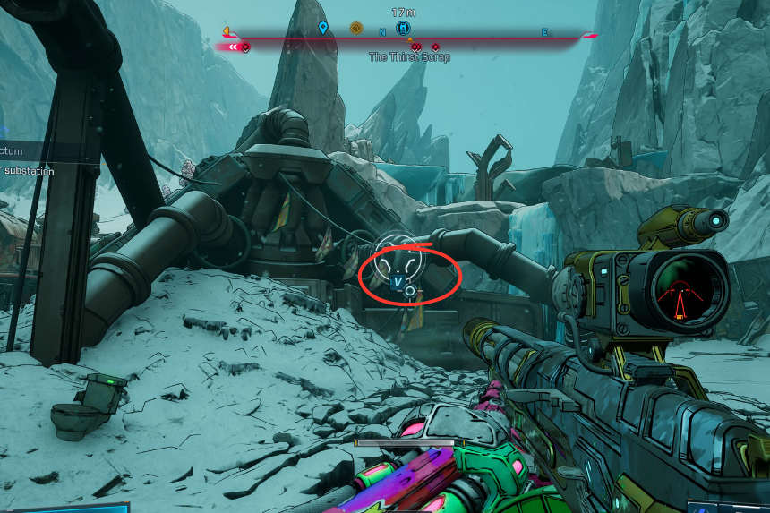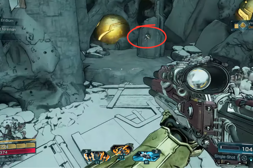 Climb up the rocky path made of small rocks near the road. At the top, use the grappling point to pull yourself onto the ledge with the fragment. To know all the locations of the Vault fragments, read our guide on “All Primordial Vault & Fragment Locations – Borderlands 4”