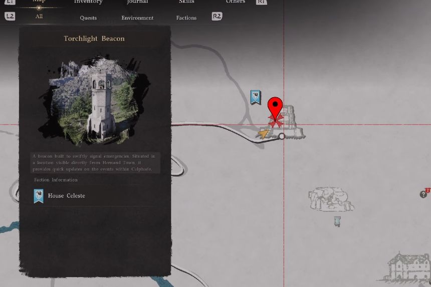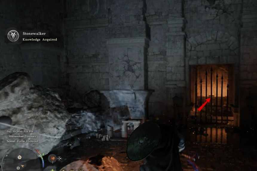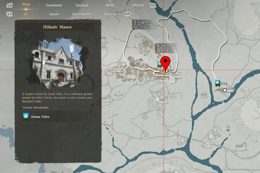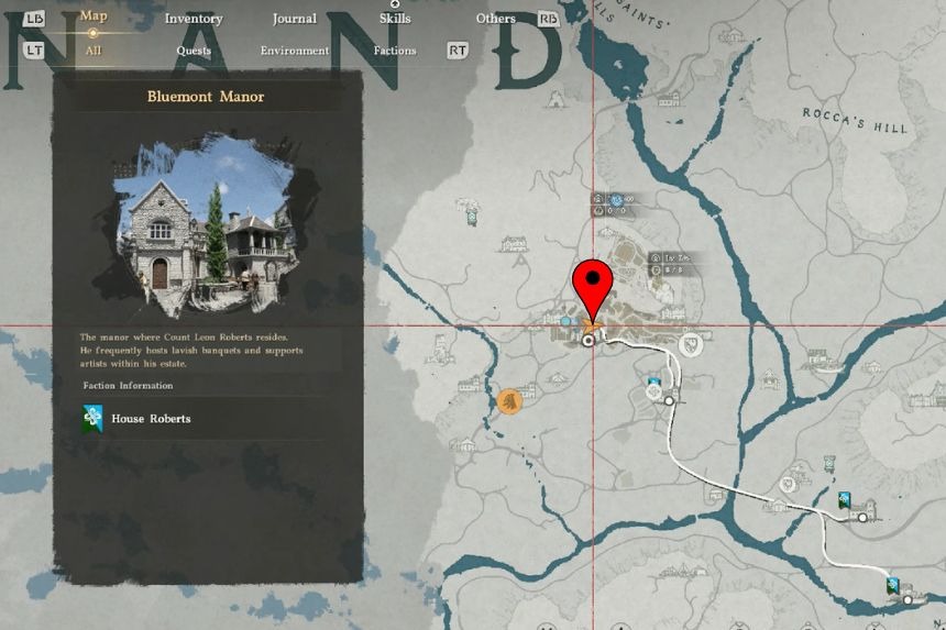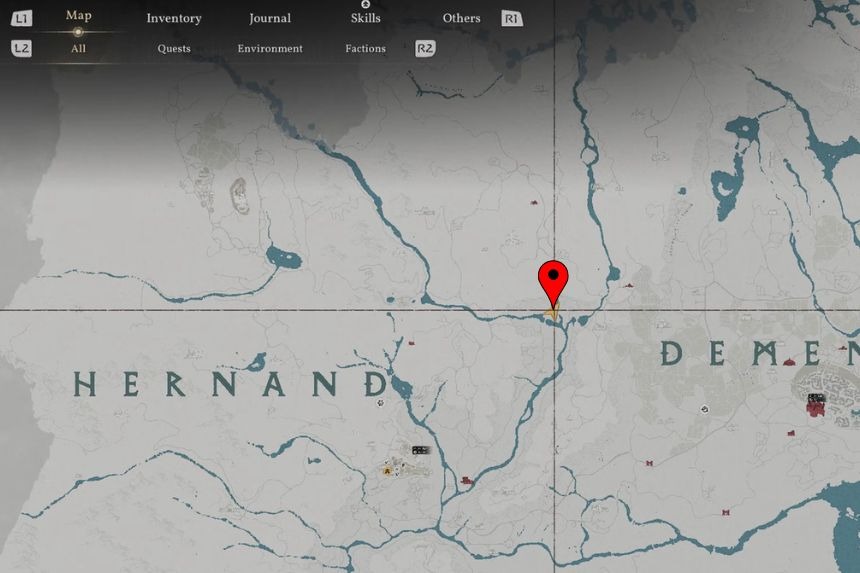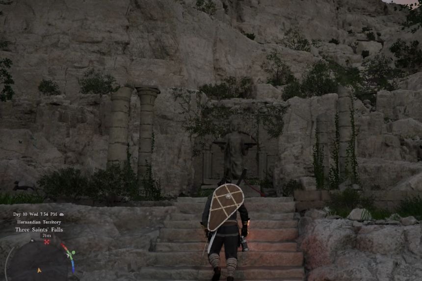 To get the Legionary’s Gladius sword, go north of Hernand Castle until you reach a large bridge. From there, go along the top of the cliffs near the base of Three Saints’ Falls. Moving along the right side of the cliffs, you will find a Statue of Justice. Interact with it to light both candles that it is holding. After lighting both candles, a gate will open. Go through it, open a treasure chest inside, and collect your reward.