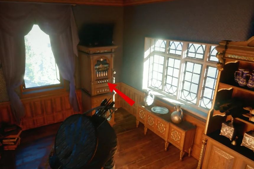 To get the finely crafted gold earrings, go to the Lioncrest Manor. Go towards the back side of the manor, near the fence, to enter the building from the middle window. When you enter the building, open the door on the left side, near the bookshelf, to find a painting puzzle.