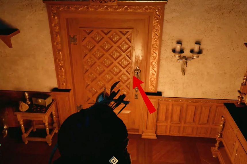You can find the Saint’s necklace inside a strong box in the Hillside Manor just southeast of the Hernand Castle. When you reach the manor, go to the left side of the main entrance and climb up the wall to enter from a window. Open that window and climb inside to find the strong box on the far side of the room, away from the door.