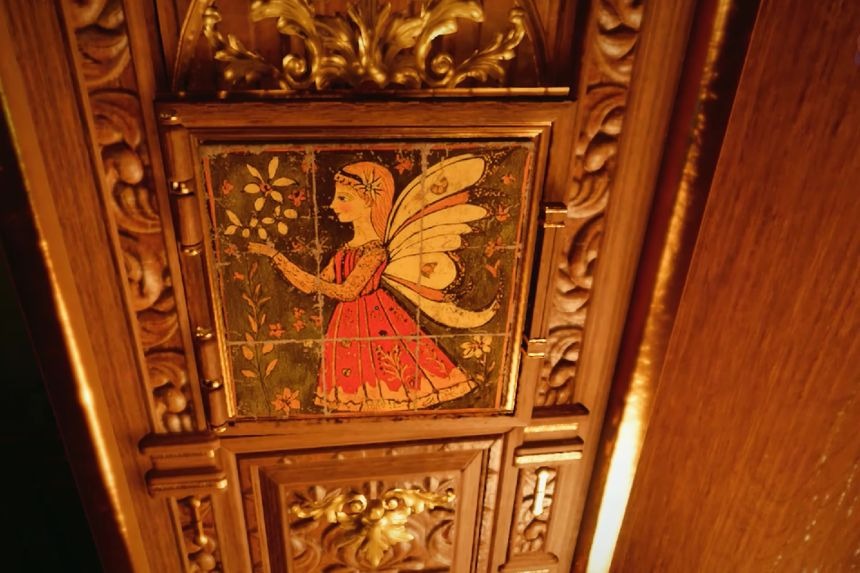 To solve this puzzle, you need to rotate each of the nine painting pieces until they line up correctly and create a full picture. Keep turning each fragment one by one until the image looks complete, as shown in the picture above. After you solve the puzzle, the strong box will open, and you will get the finely crafted gold earrings.
