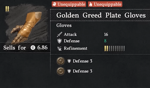 To get the final piece to complete the set, you need to go to the Gale of Judgement Cave. This is another cave hidden behind a waterfall. Go to the location and you will notice a train tracks bridge, the waterfall underneath is where you need to go. Jump down from the cliff, but don’t go all the way down, there is a platform midway, you need to stab the waterfall there, which will take you inside. Go in and claim your reward – The Golden Greed Plate Gloves.