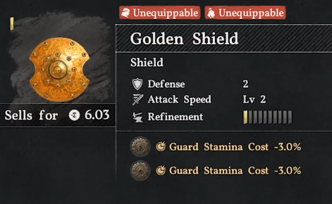 If you have already discovered the Golden Greed Plate Set, then the Golden Shield is not far from that. If you haven’t then, you will want to get that along with the shield. Go to the Silentwater Grotto on the map and you will notice train tracks all around. There is a waterfall in the area. Go to the base of the waterfall and use a stab to pierce through the waterfall. The Golden Sword is in a chest inside.
