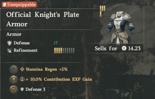 The Official Knight Plate Armor, GLoves, and the Boots are a reward for beating Awakened Lucian Bastier. Here are the stats.