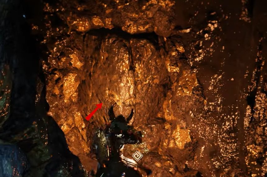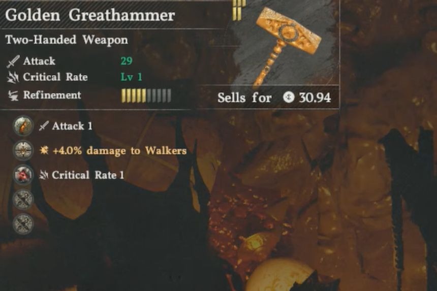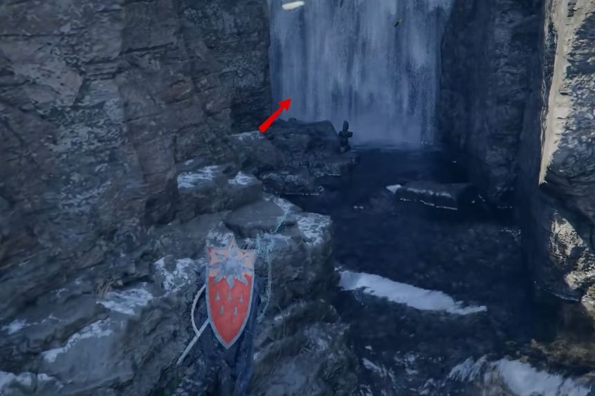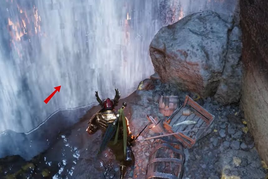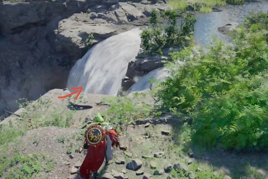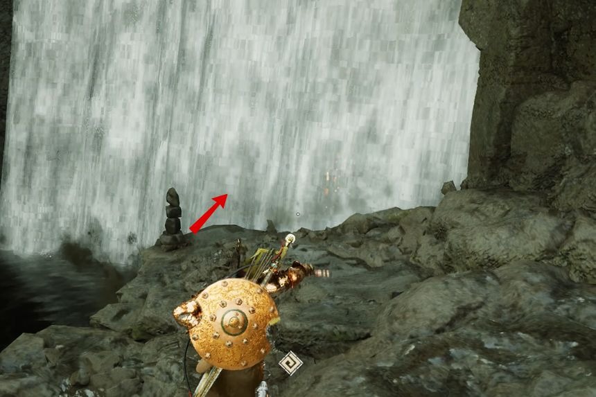 To obtain the Golden Greathammer, you’ll need to go to the second Sacred Beast Cave that can be found close to the Red River Cliff Watchtower. Once you reach the marked location, you’ll find a waterfall on your right side, go behind it, and use stab to enter the Sacred Beast Cave. Inside, you’ll find the treasure chest containing the Golden Greathammer.