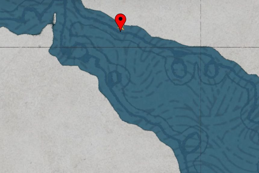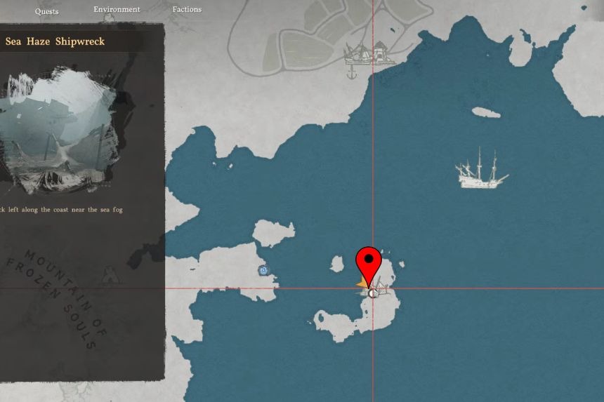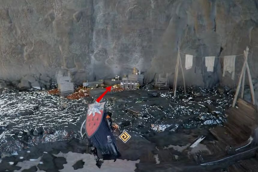 To get the Dancing Catfish Cloth Armor, you’ll need to go to the Abandoned Cliffside Cabin located on the Mountain of Frozen Souls. Head over to the marked location and you’ll find the cabin to your right. The Dancing Catfish Cloth Armor can be found just outside the cabin near a crate.