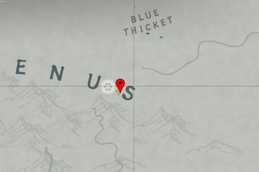 The Thalwynd Longsword is an easy find once you know the location. Go to the location marked on the map and climb up the hill, there is a small cave hidden behind the trees. Use the images for clues and you will find the sword standing against the cave wall.