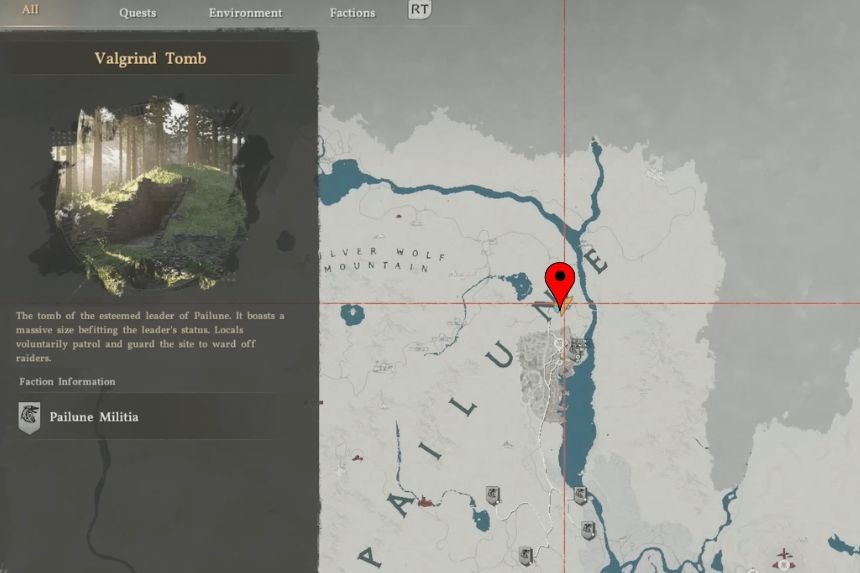 To get the Nobleman’s Bow, you’ll need to go to the Valgrind Tomb that’s found north from Pailune. Once you reach the marked location, you’ll find the tomb entrance in front of you. Go inside and on the right side, you’ll find a hole in the wall leading to a different room. Use the to reach the small room with the treasure chest that contains the Nobleman’s Bow.