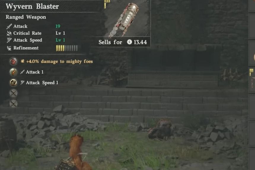 The Wyvern Blaster can be obtained by defeating Balthazar, the Wyvern Flame, located in Fort Windbridge. Before the fight, it’s important to make sure you have plenty of food for healing, so you won’t run out during the fight. It’s also important to make sure your stamina level is upgraded.