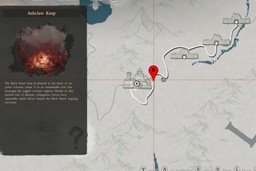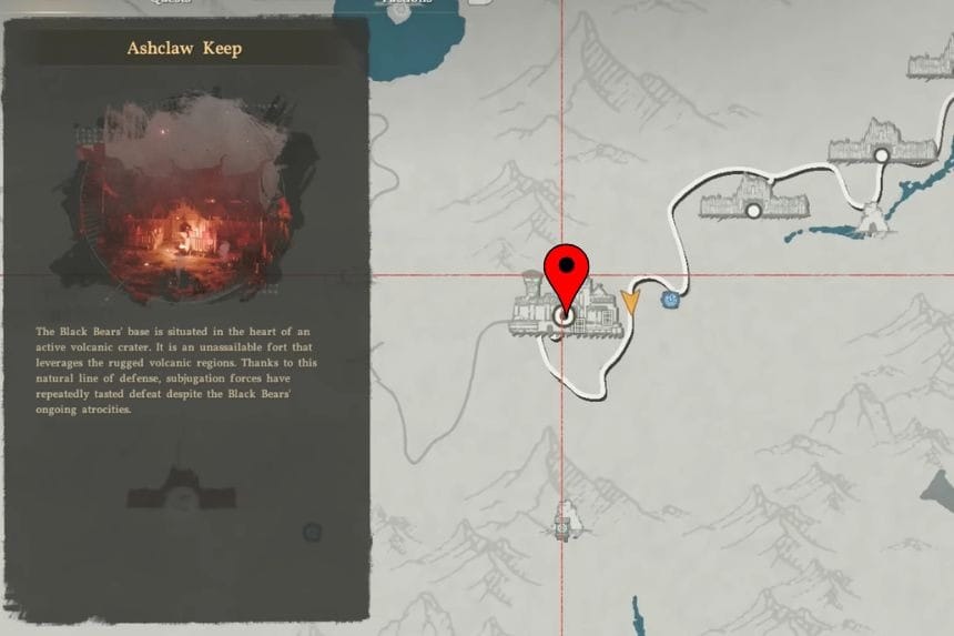 The Flame Spear can be collected from a weapon rack inside Ashclaw Keep. Enter the Ashclaw Keep and take a left turn. On the platform ground near the building, you will find the spear.