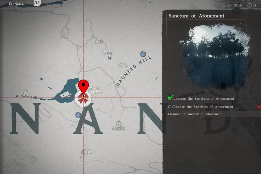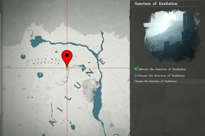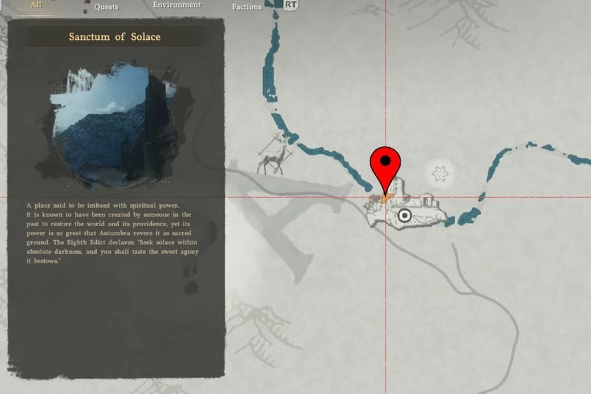 To get the Ancient Shield, you’ll need to go to the Sanctum of Faith near The Grey Forest. Head over to the marked location to reach the sanctum. If you go to the right portion of the sanctum, you’ll find some vines blocking your way forward. Use your sword to burn down the vines, then go inside the room where you’ll find a treasure chest containing the shield you’re looking for.