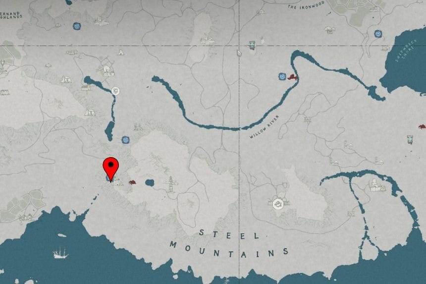 The Icewing Plate Gloves are located in Claggy Chasm Cave, which is hidden behind a waterfall west of Long Branch. To enter the hidden area, use your weapon’s stab ability and push through the waterfall. This opens access to a small hidden space behind it. Inside, you will find a chest containing the Ice Wing Plate Gloves.
